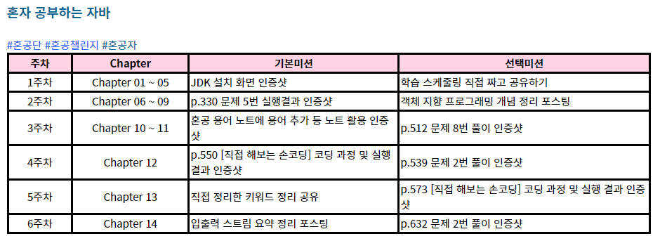 [#혼공챌린지] 혼공 학습단 6기 도서별 미션과 커리큘럼