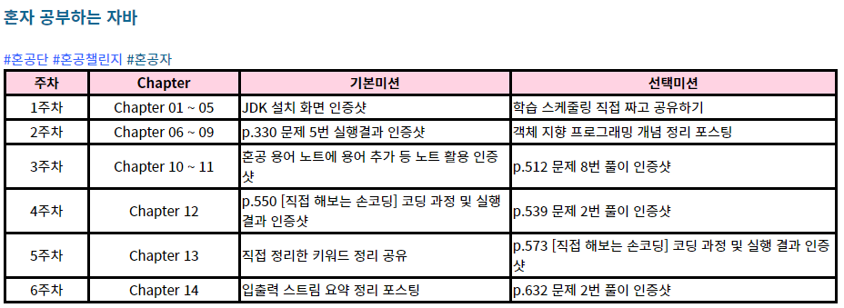[#혼공챌린지] 혼공 학습단 6기 도서별 미션과 커리큘럼